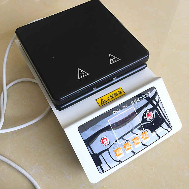 加热板并不是水浴形式的加热锅,升温速度没有df101s快,但是在实验室中的出镜率还是很高的。用户多使用平底烧杯或平底烧瓶来做加热反应,与101s一样,这种设备体积不大,日常使用中都是放在桌子上的。